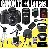 Canon EOS Rebel T3 12.2 MP CMOS Digital SLR Camera with EF-S 18-55mm f/3.5-5.6 IS II Zoom Lens & EF 75-300mm f/4-5.6 III Telephoto Zoom Lens + LPE10 Battery & Charger + Wide Angle Lens + Telephoto Lens + 16GB Deluxe Accessory Kit for Sale - Review & Buy at Cheap Price
